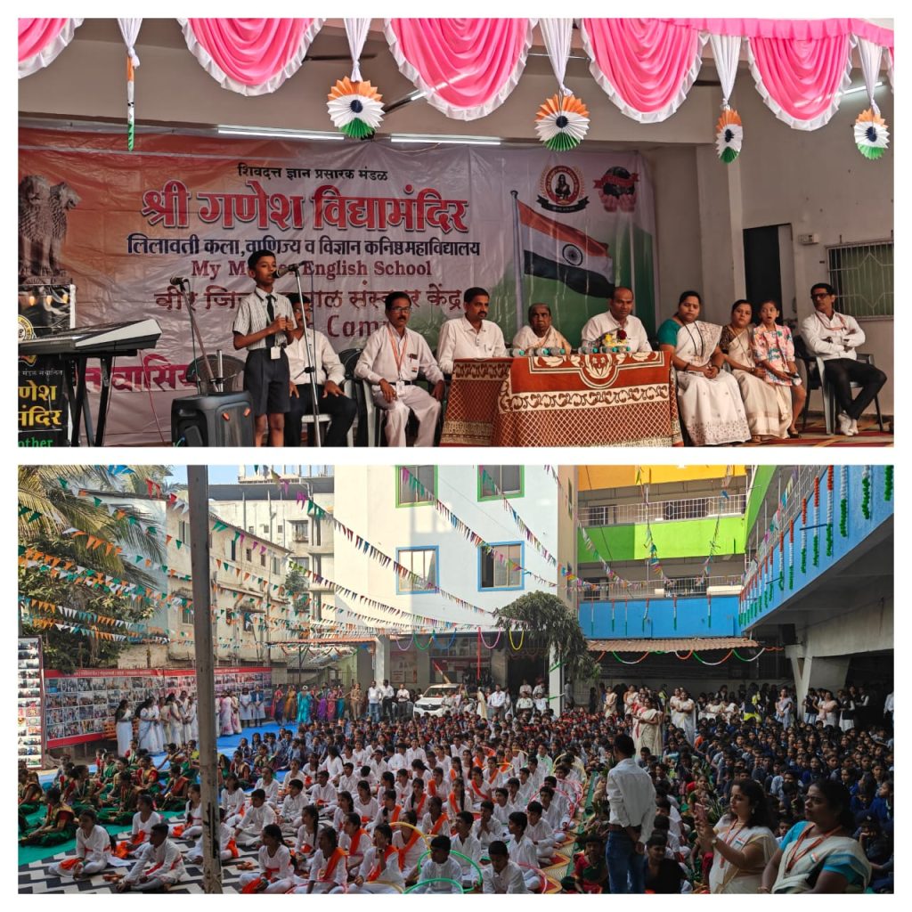 दिवा – ( सचिन शेलवले ) दिनांक 26/01/2025 रोजी शिवदत्त ज्ञान प्रसारक मंडळ संचालित श्री गणेश विद्यामंदिर लिलावती कला, वाणिज्य व विज्ञान कनिष्ठ महाविद्यालय व माय मदर इंग्लिश स्कूल या शाळेत रविवार दिनांक 26 जानेवारी रोजी भारतीय प्रजासत्ताक दिनाचा सोहळा मोठा उत्साहात संपन्न झाला.