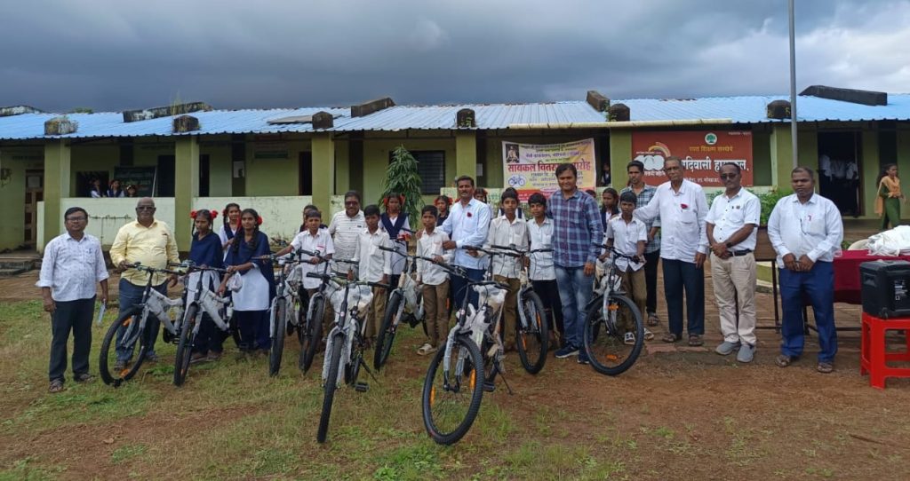 मोखाडा तालुक्यातील आदिवासी विद्यार्थ्यांना मैत्री फाऊंडेशनचे सायकल वाटप…मोखाडा – सचिन वझरे आदिवासी ग्रामीण भागातील विद्यार्थी सोई – सुविधान अभावी शैक्षणिक प्रवाहातून बाहेर पडू नयेत या विधायक हेतूने ग्रामीण व आदिवासी विद्यार्थ्यांच्या शैक्षणिक प्रगतीसाठी मैत्री फाऊंडेशन , बोरवली यांच्या तर्फे समाजोपयोगी उपयोगी उपक्रम राबविण्यात आला. या उपक्रमांतर्गत आदिवासी हायस्कूल मो-हांडा,पोशेरा व वाशाळा या तीनही हायस्कूलला प्रत्येकी 20 अशा 60 सायकलींचे वाटप करण्यात आले. सदर कार्यक्रम हा आदिवासी हायस्कूल पोशेरा येथे पार पडला. या समाजोपयोगी कार्यक्रमाचे आयोजन हे जुचंद्र ता. वसई येथील शिवछत्रपती समाजसेवा मंडळाने केले होते. मैत्री फाऊंडेशनचे विश्वस्त वेदांत राजे त्रिवेदी ,पियुष त्रिवेदी, पियुष पटेल यांच्या हस्ते प्रत्येक शाळेला 20 सायकली वाटप करण्यात आल्या तसेच विद्यार्थ्यांना चॉकलेट , फ्रुटी, बिस्किट वाटप इ. चे करण्यात आले.तसेच शिव छत्रपती समाजसेवा मंडळ – जुचंद्र यांच्यातर्फे आदिवासी हायस्कूल मो-हांडा यांना एक शालेय कामकाजासाठी एक लॅपटॉप देखील देण्यात आला. विद्यार्थ्यांना मार्गदर्शन करताना मंडळाचे संस्थापक – पुरुषोत्तम पाटील म्हणाले की, विद्यार्थ्यांनी रोज आई-वडिलांचा पाया पडून आशीर्वाद घ्यावेत. तसेच शिक्षण व अध्यात्माची सांगड घातल्यास आपण जीवनात नक्कीच यशस्वी व्हाल.तसेच मंडळाचे संस्थापक किरण म्हात्रे यांनी त्यांच्या भाषणात सांगितले की,प्रभारी मो-हांडा हायस्कुलचे प्रभारी मुख्याध्यापक सोनवणे यांनी केलेल्या पाठपुराव्यामुळे आम्ही हे सर्व करू शकलो. त्यांचे वेळोवेळी आम्हाला सहकार्य लाभते त्यांच्या अथक प्रयत्नाने कार्यक्रम हा यशस्वी झालेला आहे. छत्रपती समाजसेवा मंडळातर्फे याप्रसंगी विद्याधर म्हात्रे, नारायण म्हात्रे, किशोर पाटील तसेच ,पोशेरा, मो-हांडा, वाशाळा हायस्कुल चे मुख्याध्यापक,पोशेरा ग्रामपंचायतचे सरपंच, स्कूल कमिटी चे सर्व सदस्य , शिक्षक शिक्षकेतर कर्मचारीउपस्थित होते. या कार्यक्रमाचे सूत्रसंचालन हे आदिवासी हायस्कूल – पोशेराचे उपशिक्षक सोनवणे यांनी केले व आभार प्रदर्शन मो-हाडा हायस्कूलचे शिक्षक हर्षवर्धन लढे यांनी केले.